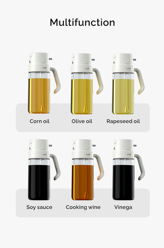 P&M Essentials+ Distributeur d'huile d'olive 2 en 1 16 oz pour cuisine - Noir, Vert et Blanc