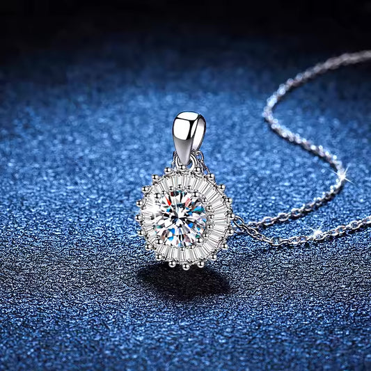 P&M Essentials+ Collier Pendentif Rond de Luxe en Moissanite pour Femme - Argent Sterling 925, Design Diamanté, Cadeau Romantique pour Mariages, Anniversaires ou Élégance Quotidienne